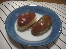 酢飯を適当な大きさににぎってネタをのせれば出来上がり。 |